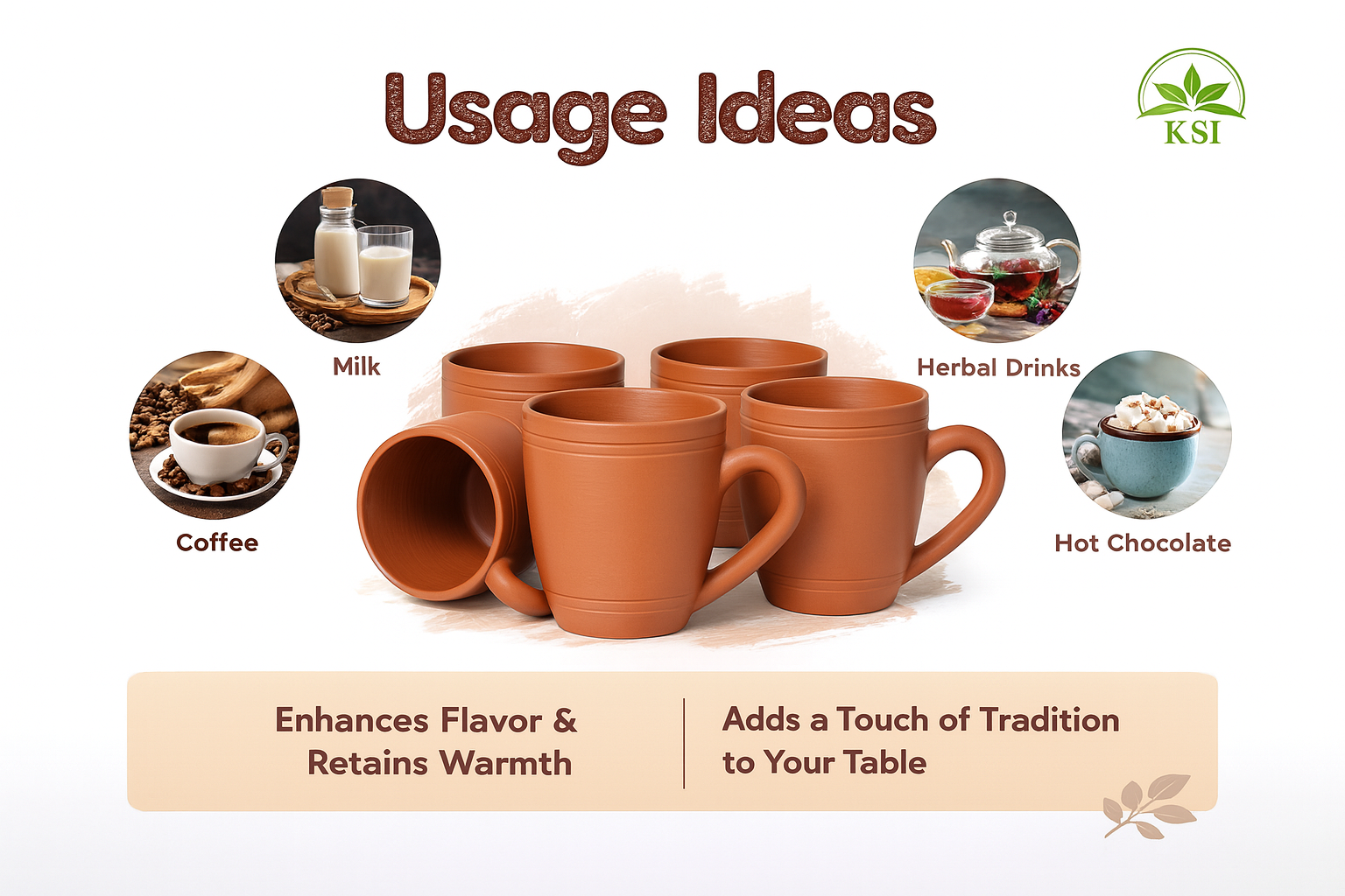 KSI Handcrafted Clay Coffee Mug – Premium Terracotta Cup for Authentic Flavor pack of 4 - KSI - KANCHAN SHREE INTERNATIONAL